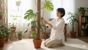 - 毎日の葉水は乾燥やハダニの予防に効果的